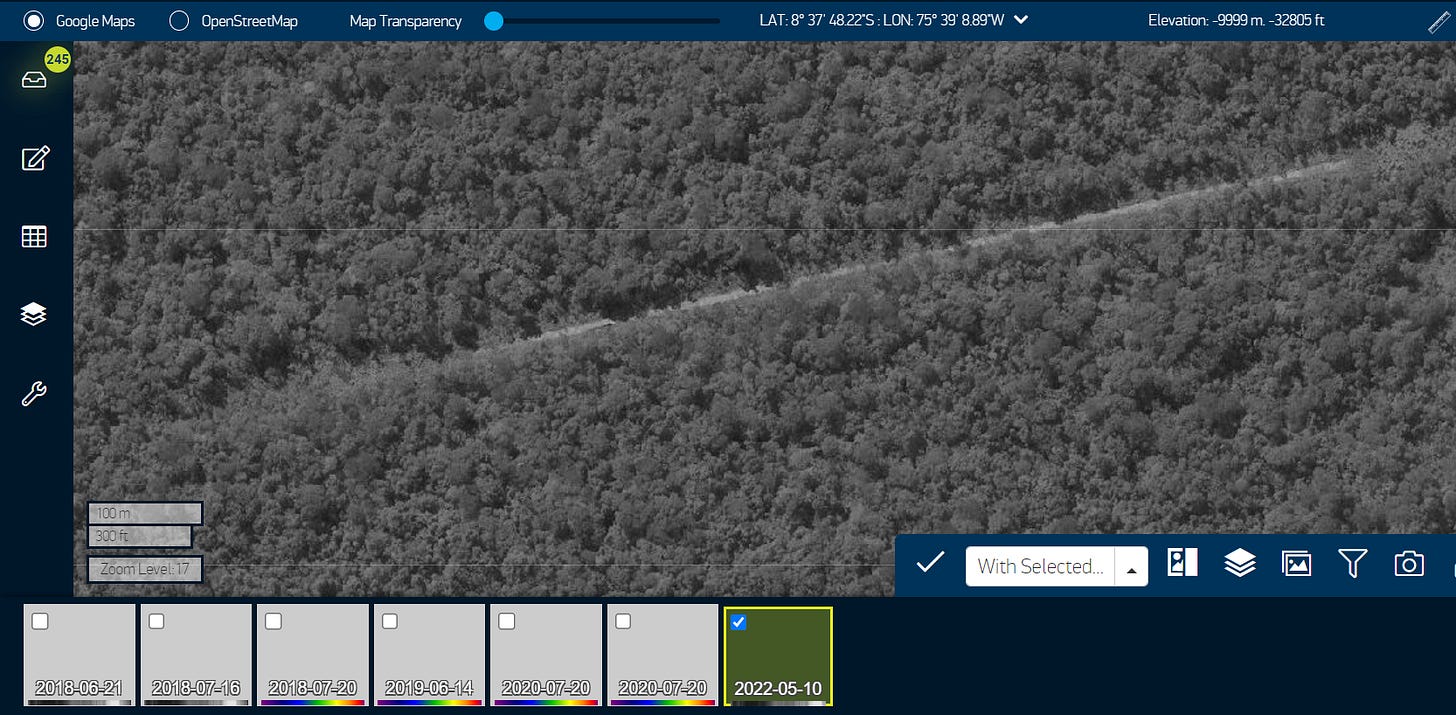 Evidence of these goings-on can be hard to detect and document, for obvious reasons, but the Lima-based indigenous federation AIDESEP has just produced a map of Peru’s newest off-limits reserve for indigenous people in “isolation” that features a “clandestine runway”, marked by a red plane. No prizes for guessing what that’s for. According to AIDESEP, the runway is roughly in the centre of the northern half of the Kakataibo Reserve, which was finally established in July 2021 after a more than 20 year struggle.